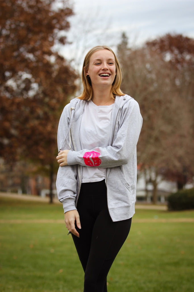 A basic zip up hoodie with the perfect touch for just enough style!